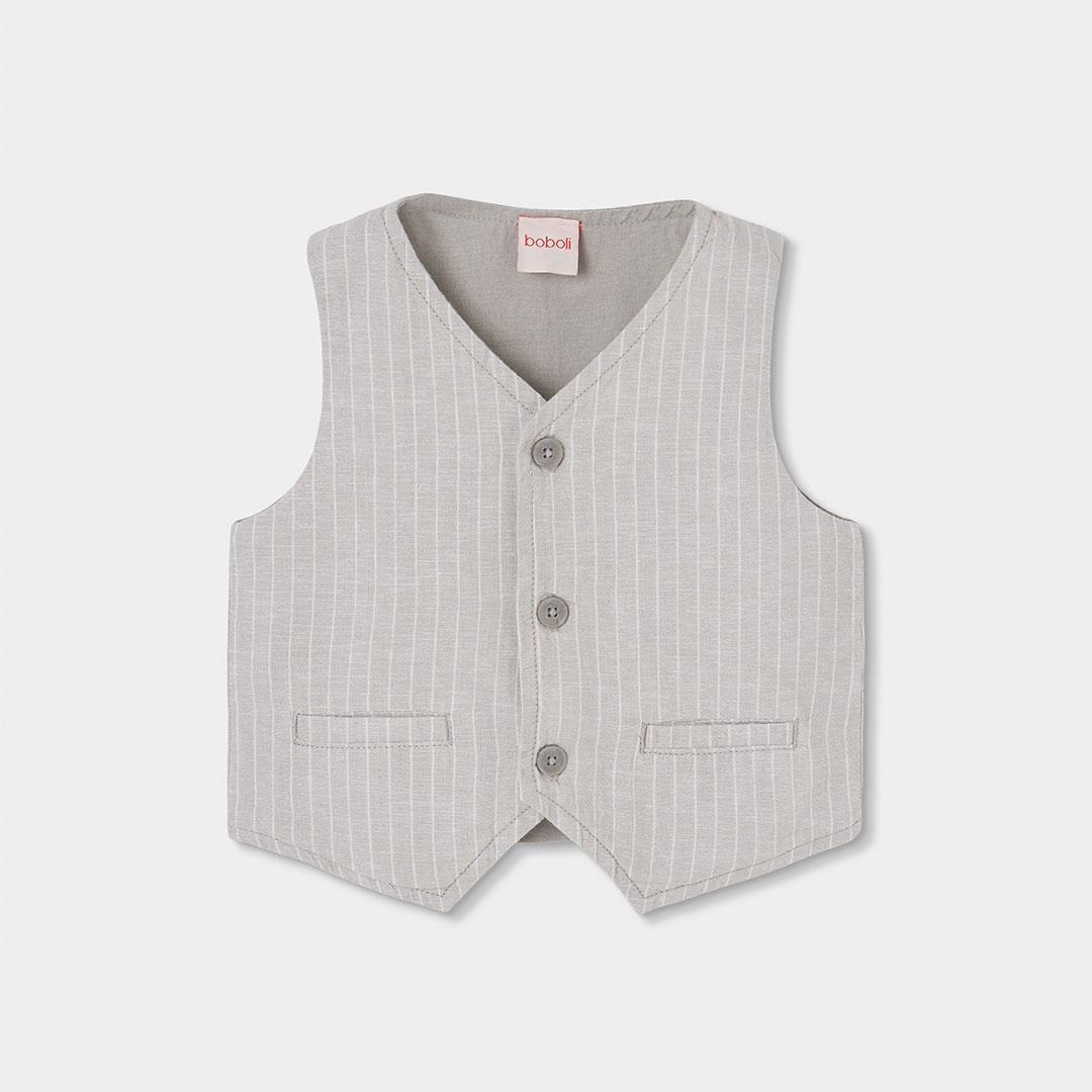 chaleco gris lino rayas